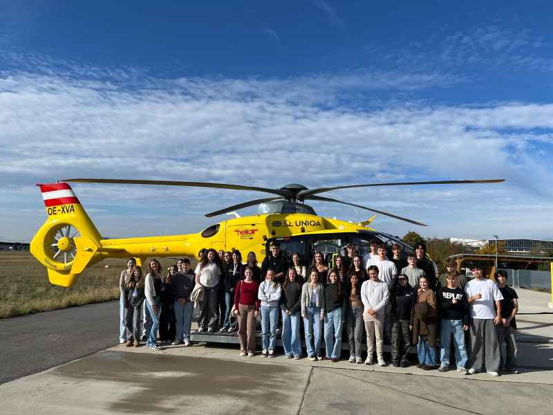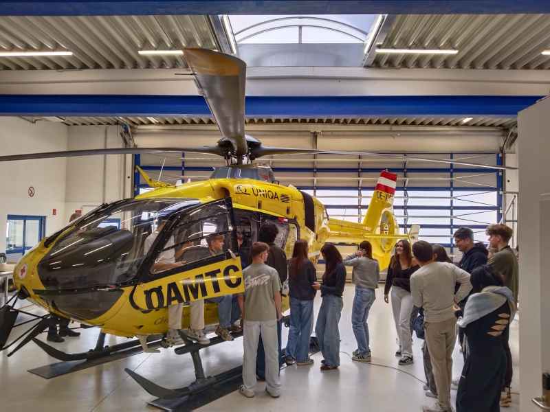 Die Klassen 7a und 7b besuchten den ÖAMTC-Stützpunkt in Wiener Neustadt und erhielten bei HeliAir, dem Wartungsbetrieb der ÖAMTC-Flugrettung, spannende Einblicke hinter die Kulissen. Vor Ort konnten die Schüler*innen die Helikopter aus nächster Nähe erkunden und erfuhren viel über: